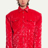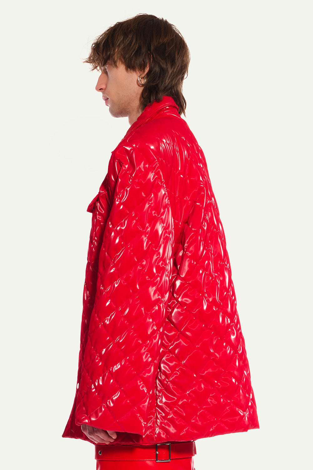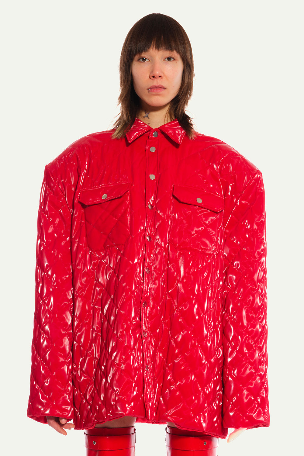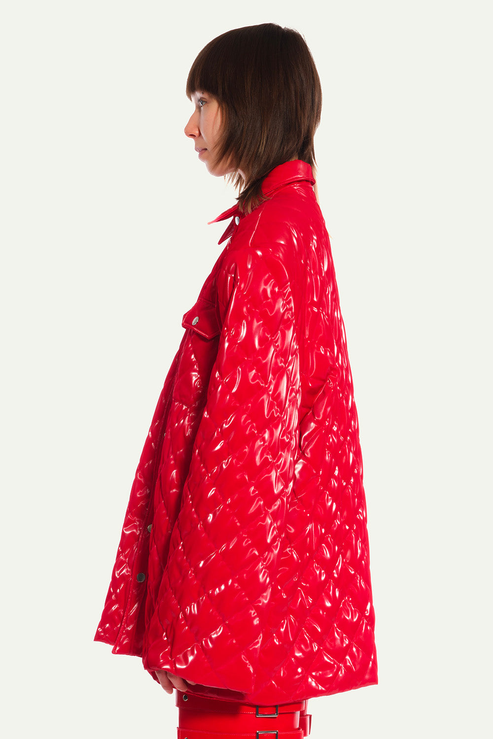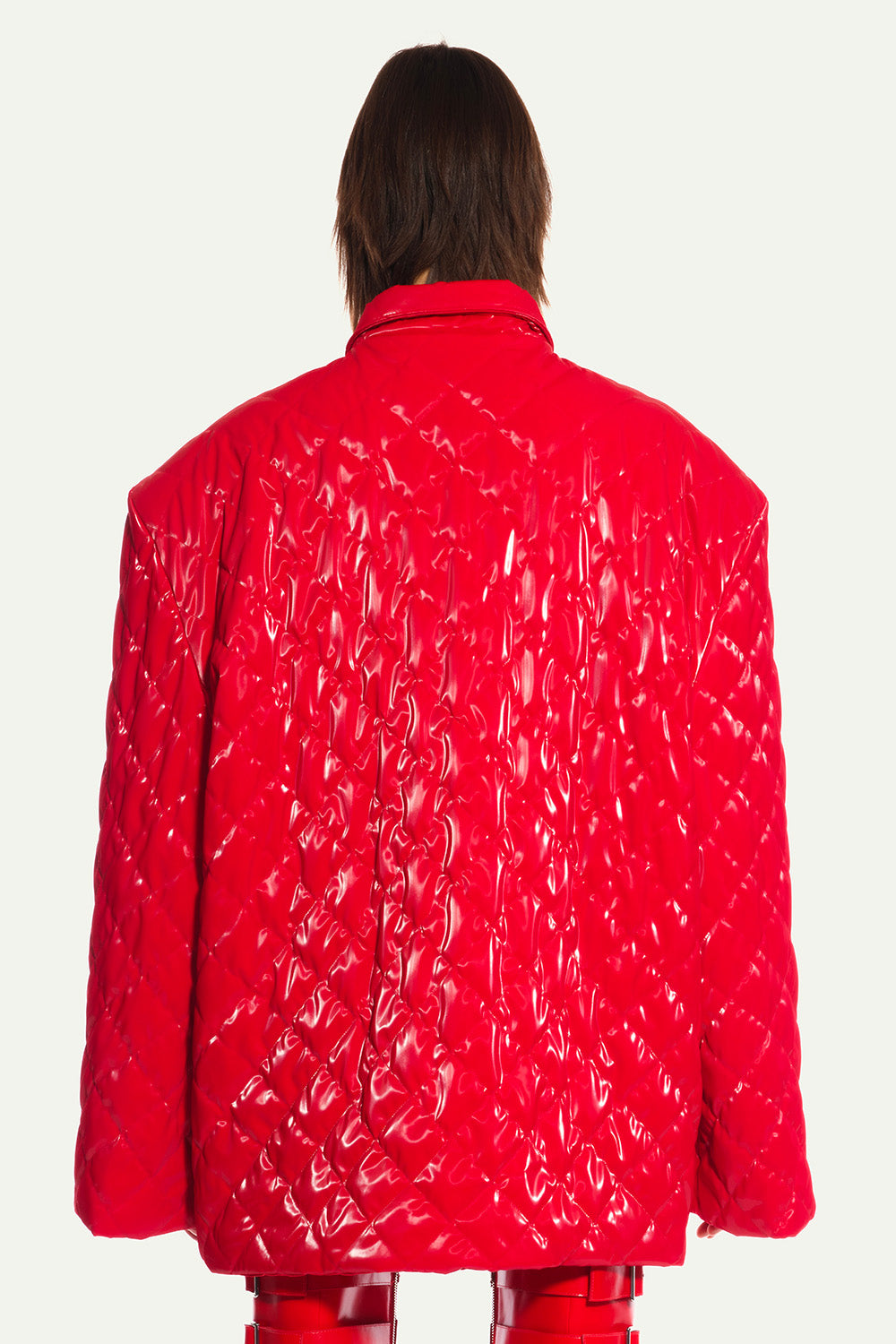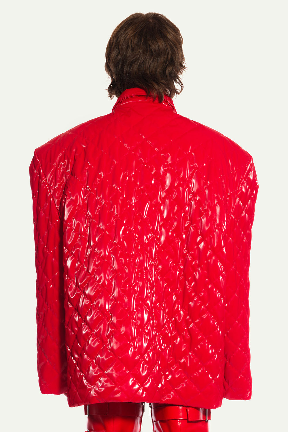 Red Quilted Oversized Jacket in Vinyl with Shoulder Pads