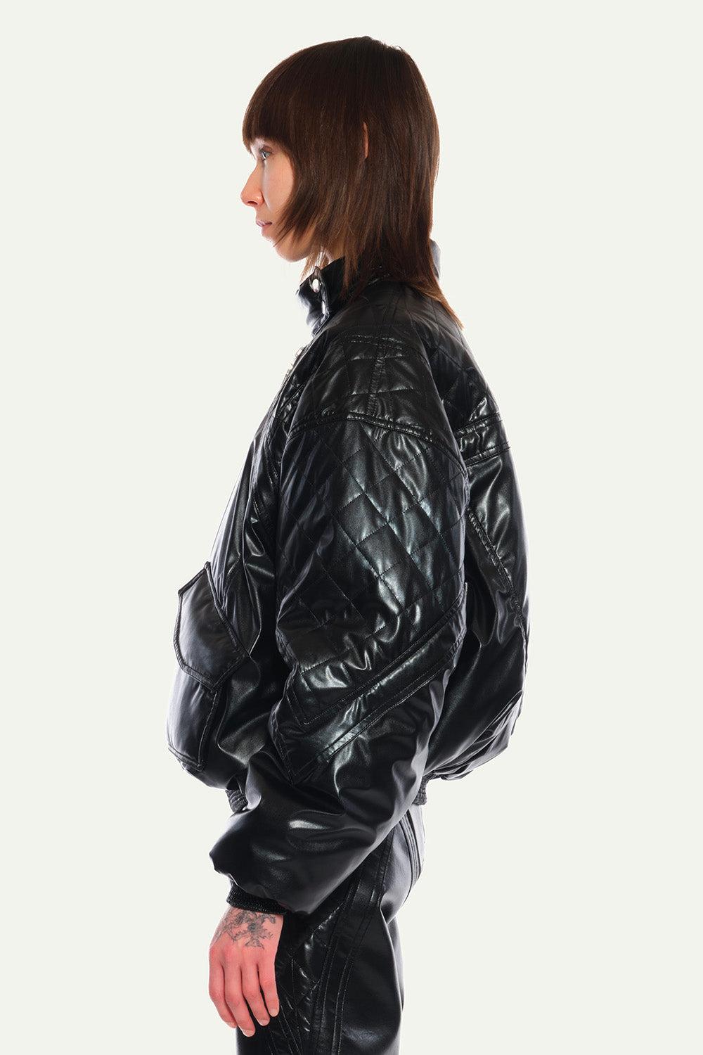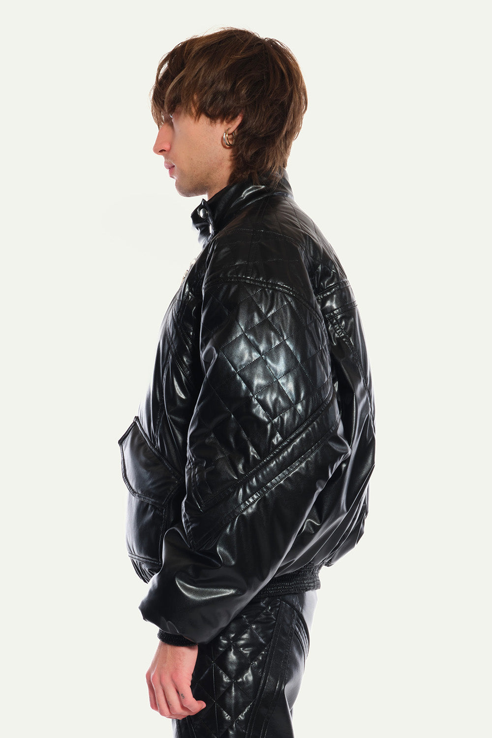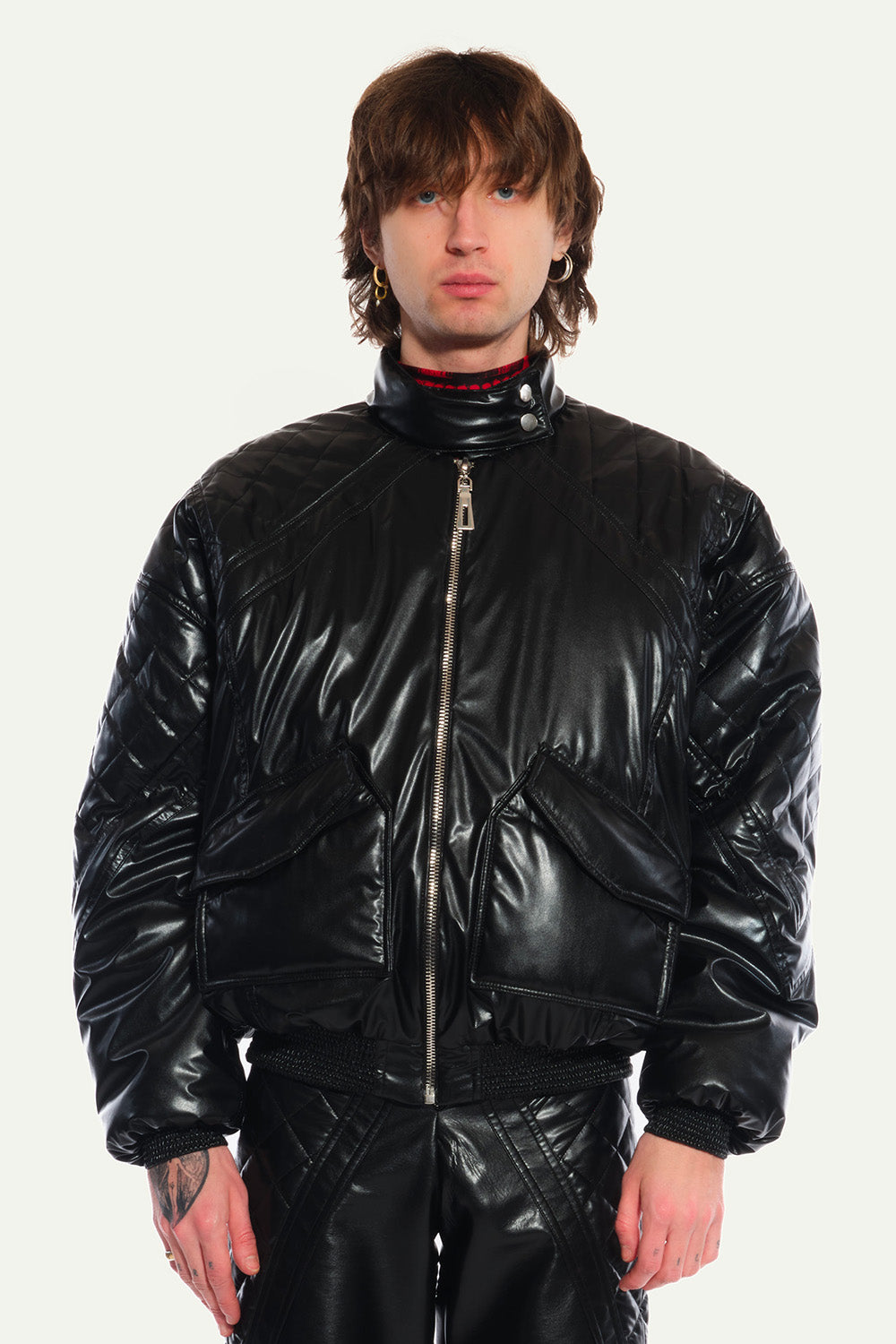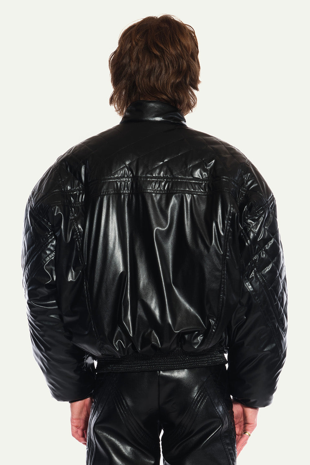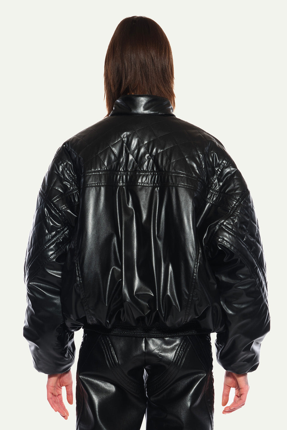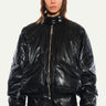 Black Oversized Bombers with Pockets and Quilted Lining in Vegan Leather