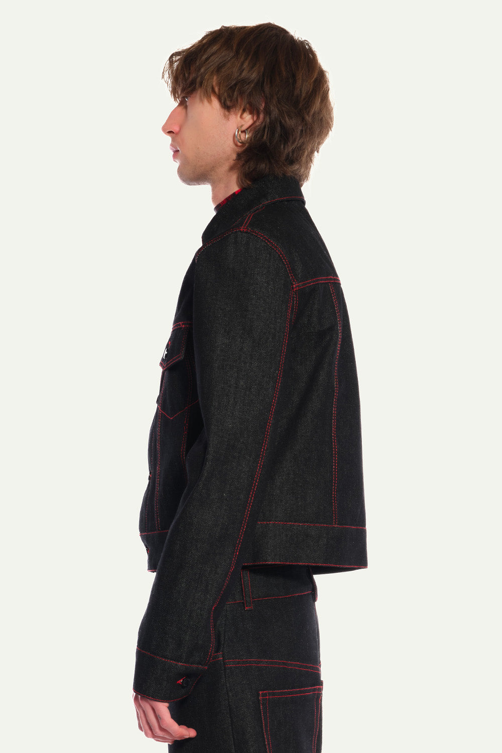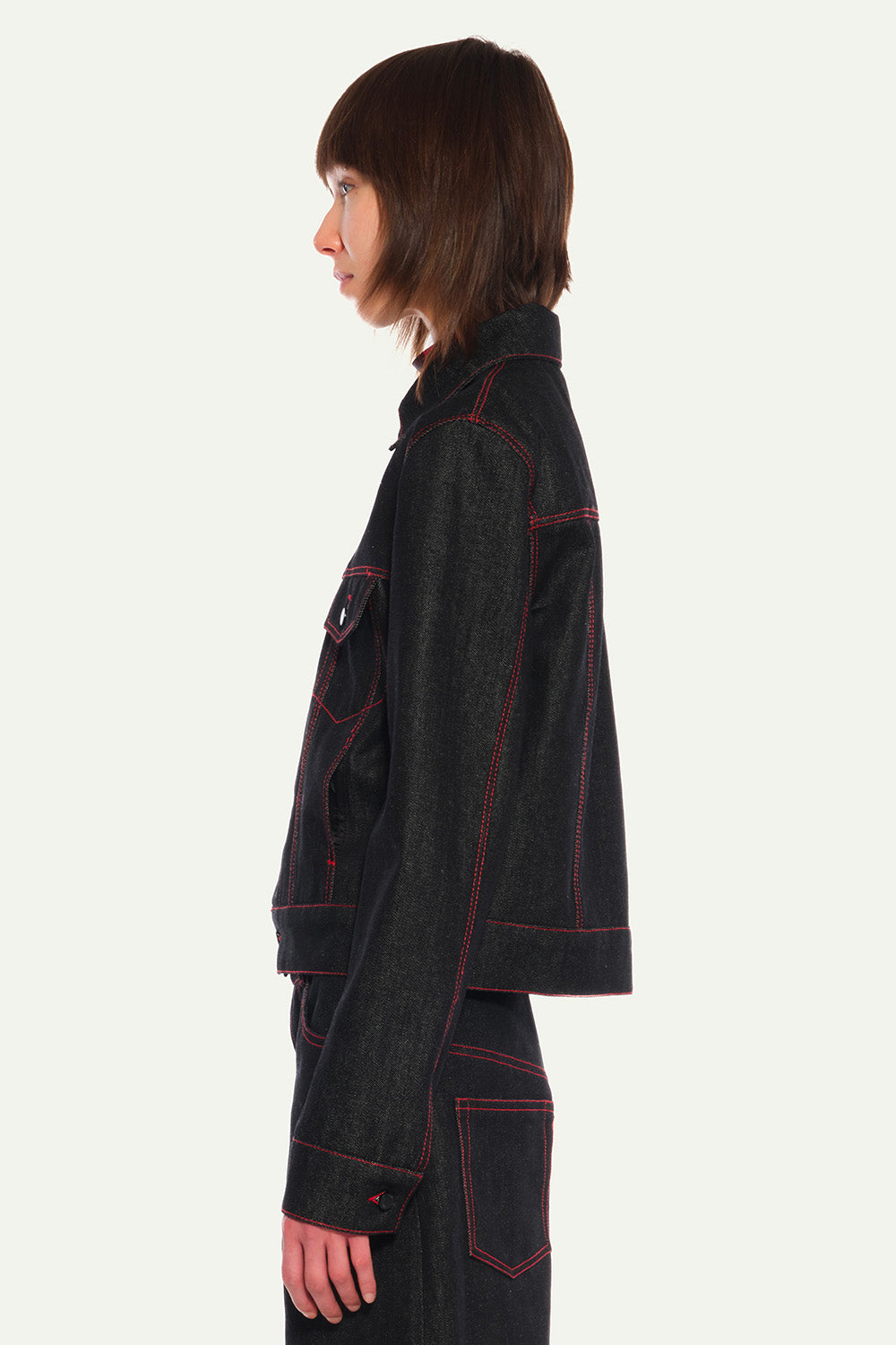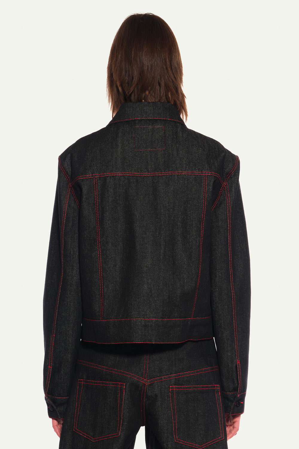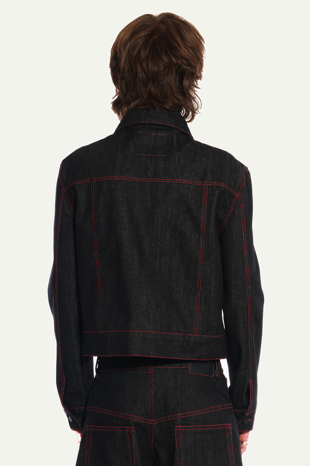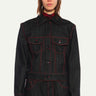 Black Denim Fitted Jacket with Red Topstitches