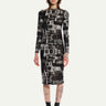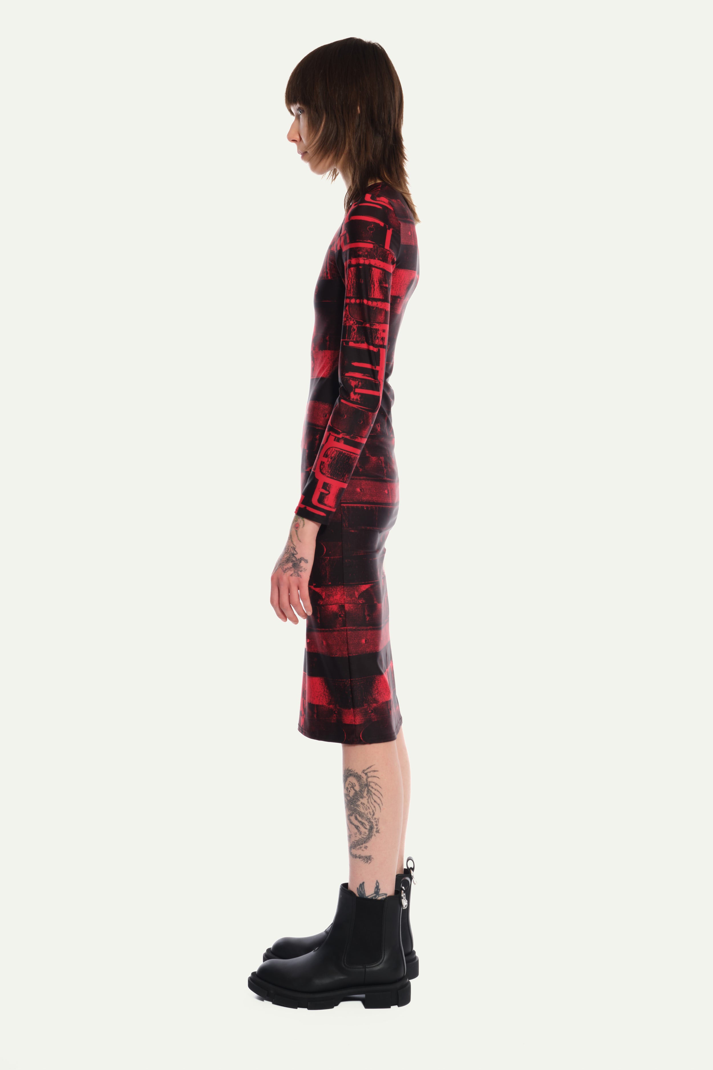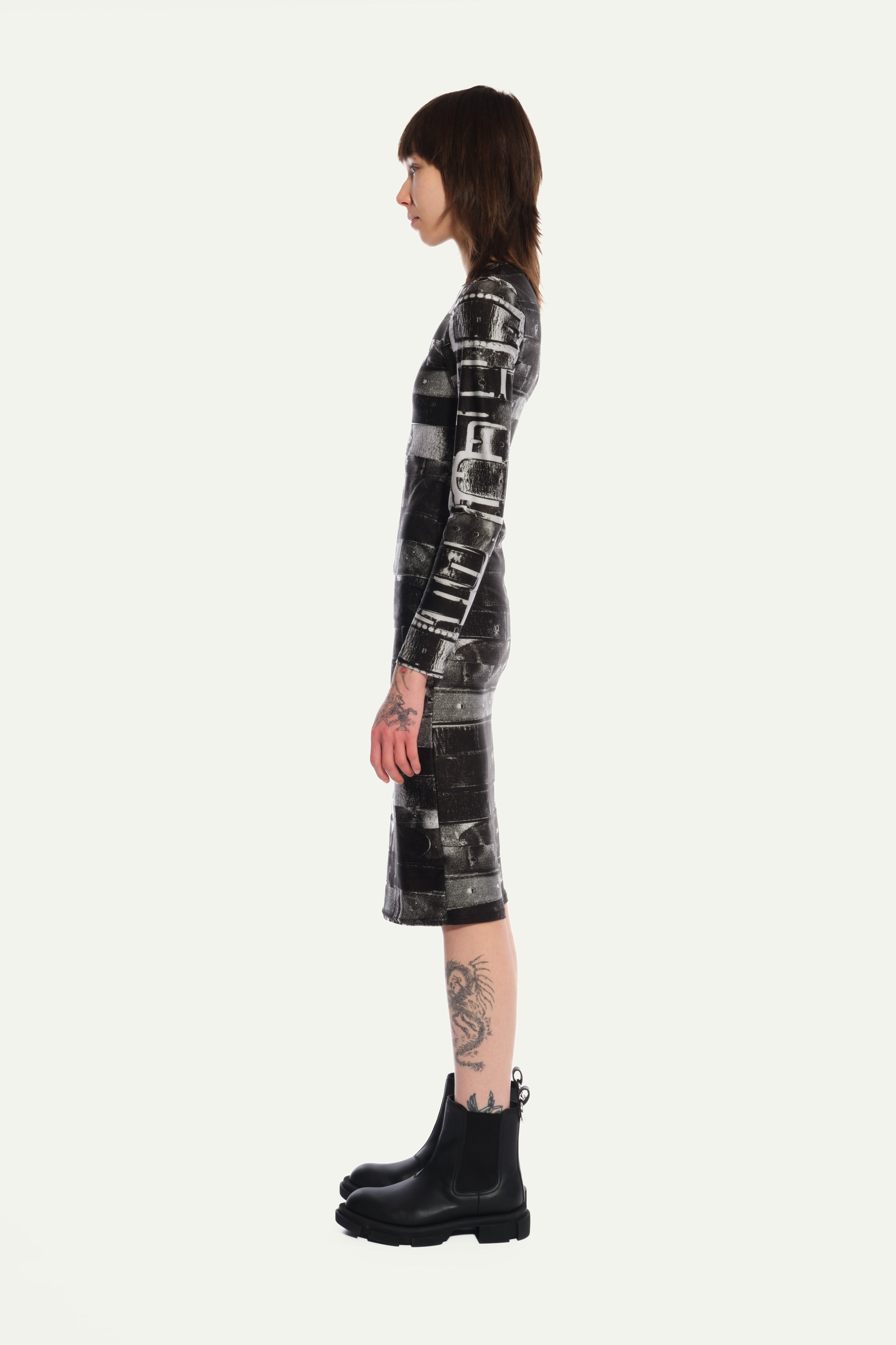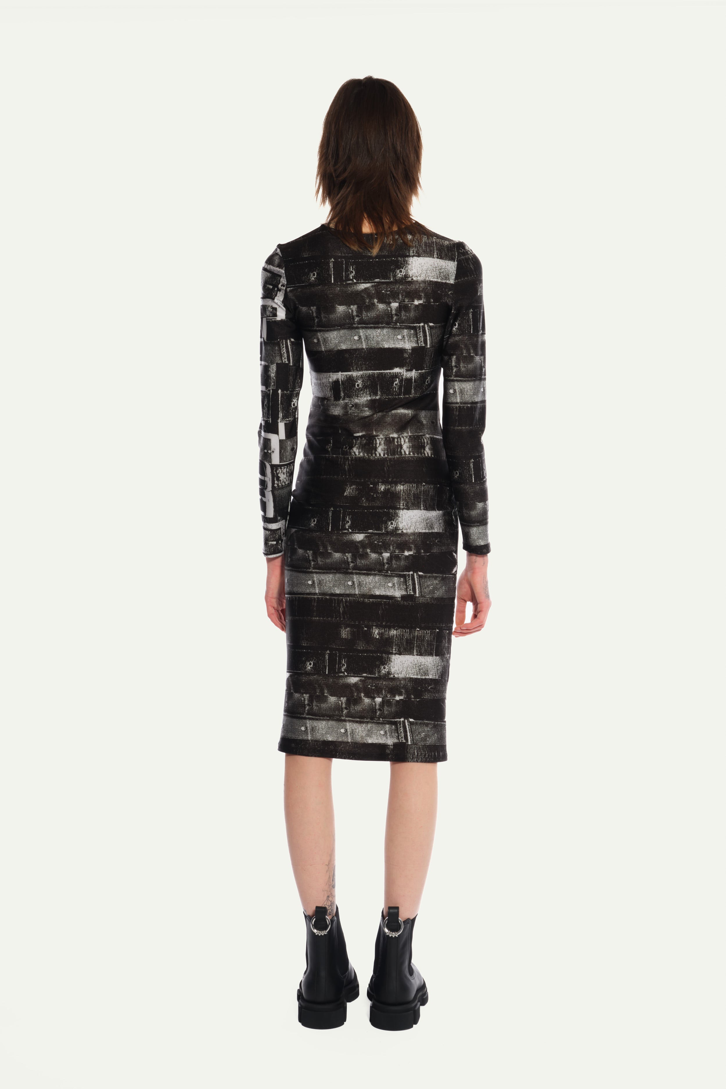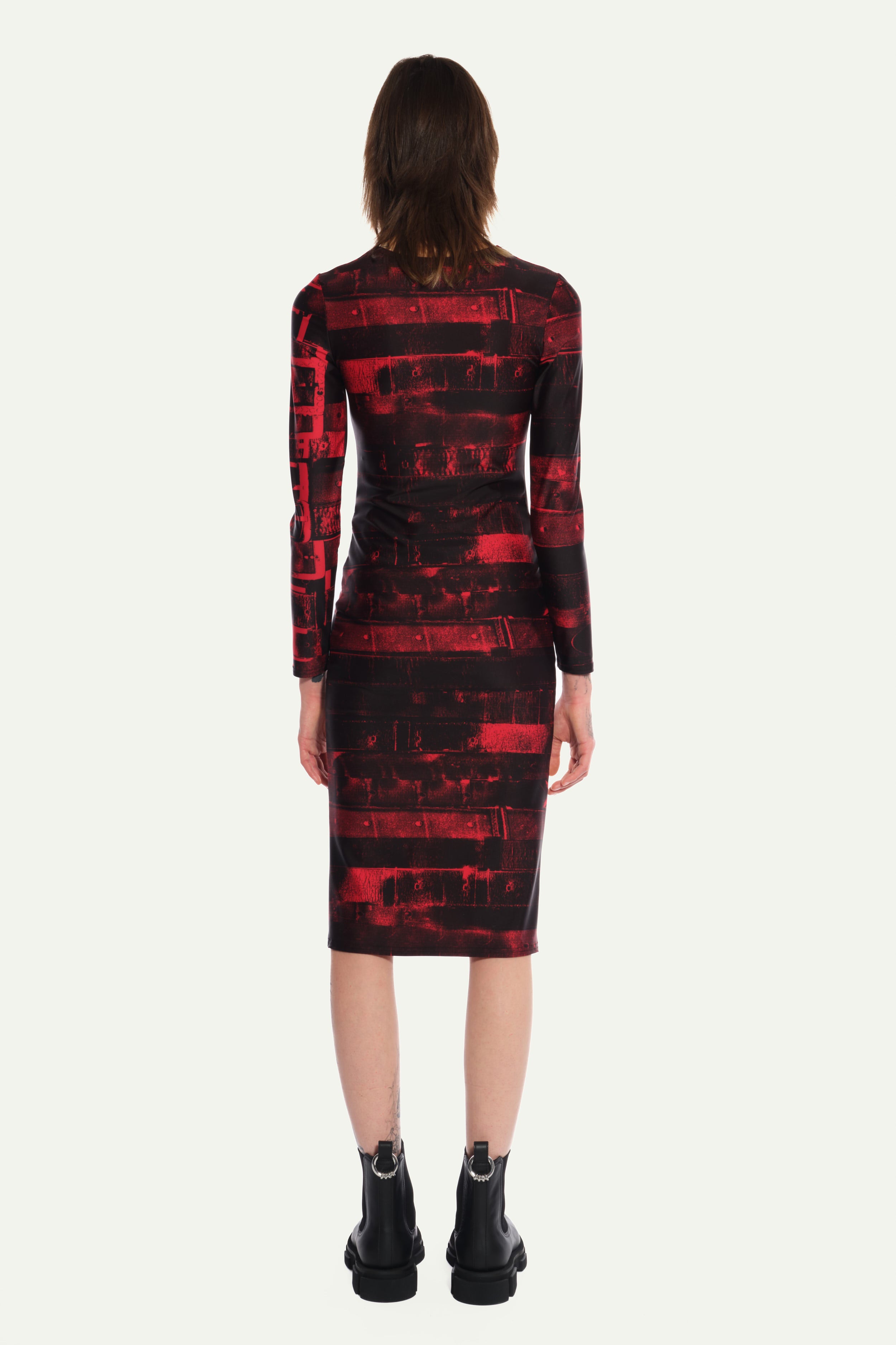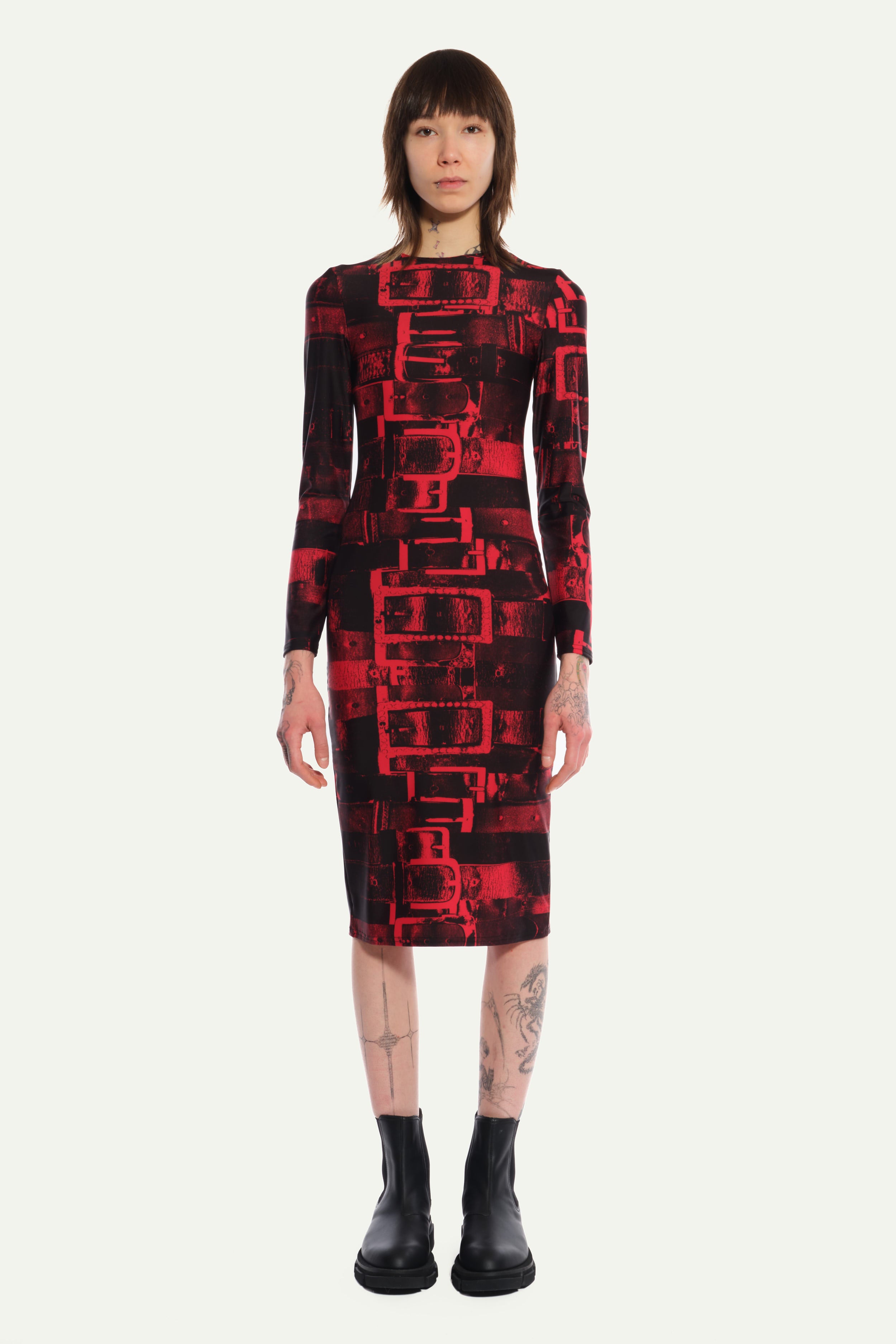 Belts Printed Dress on Spandex in Silver or Dark Red Colour