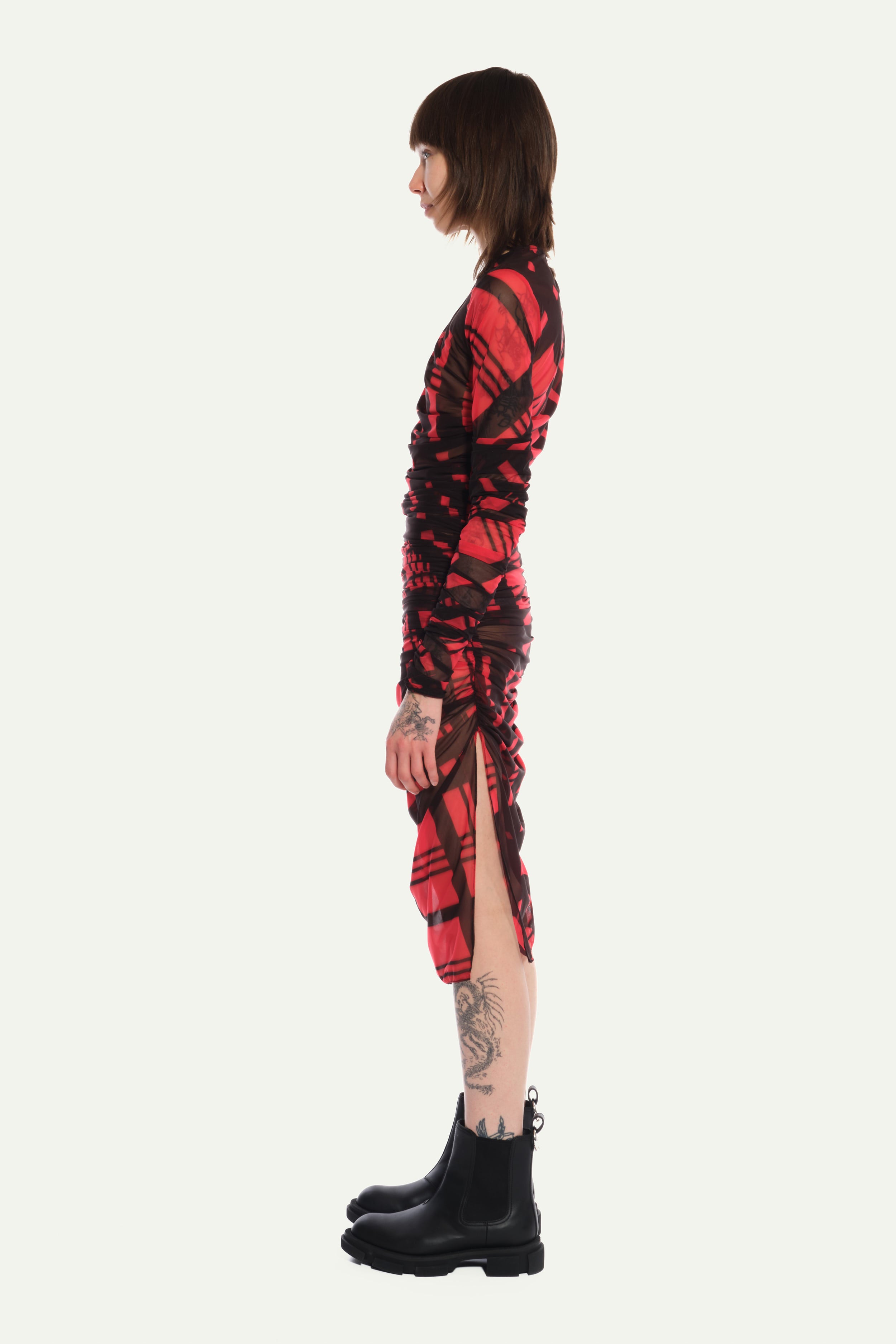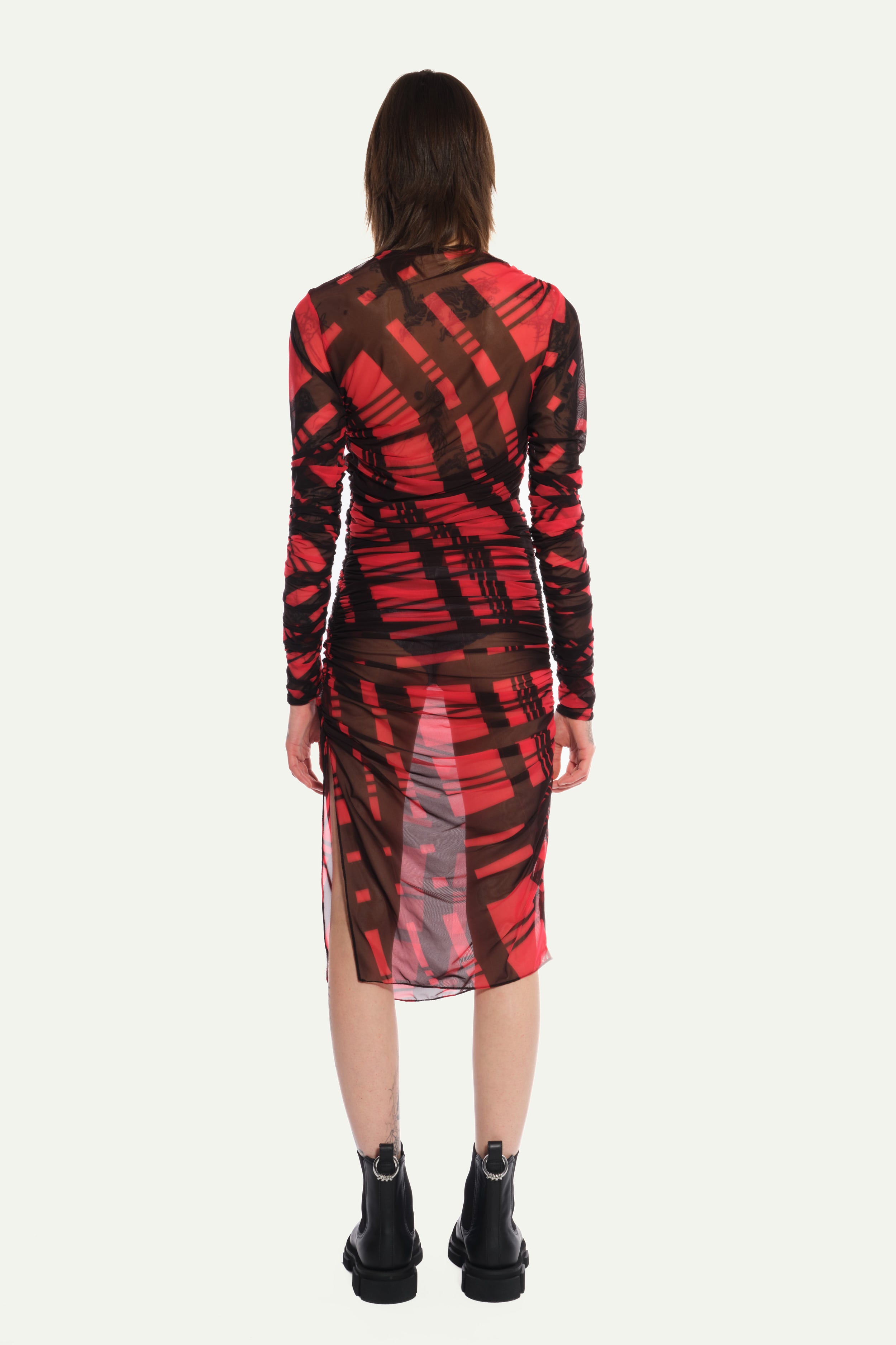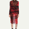 Black and Red Tartan Mesh Pleats Dress with Long Sleeve