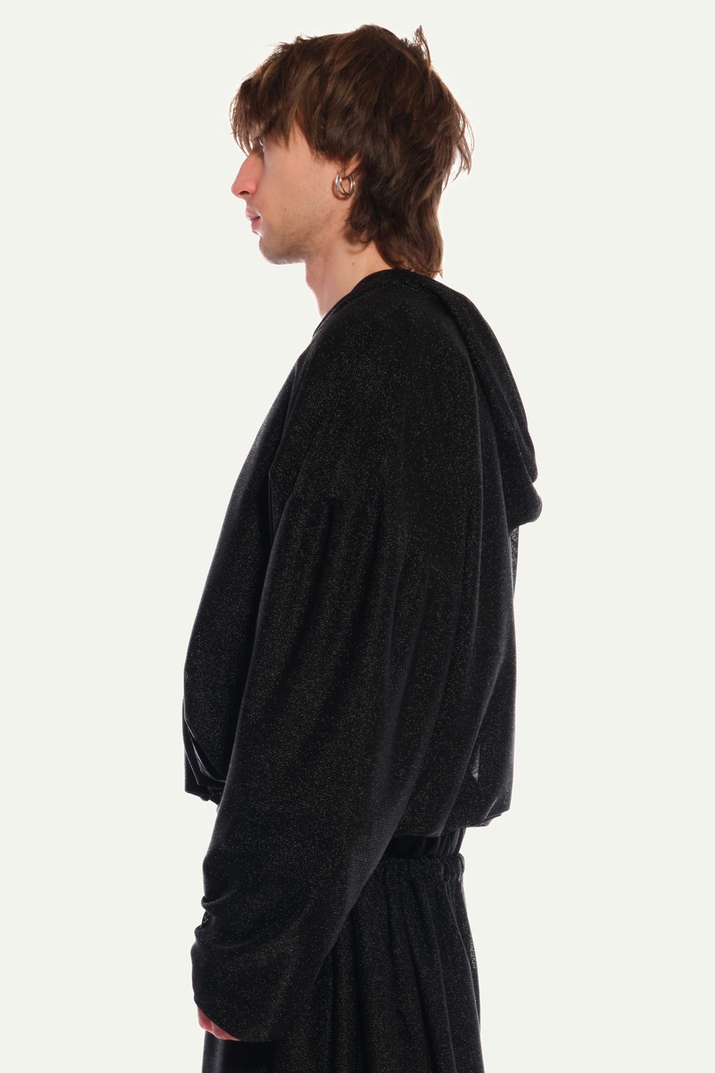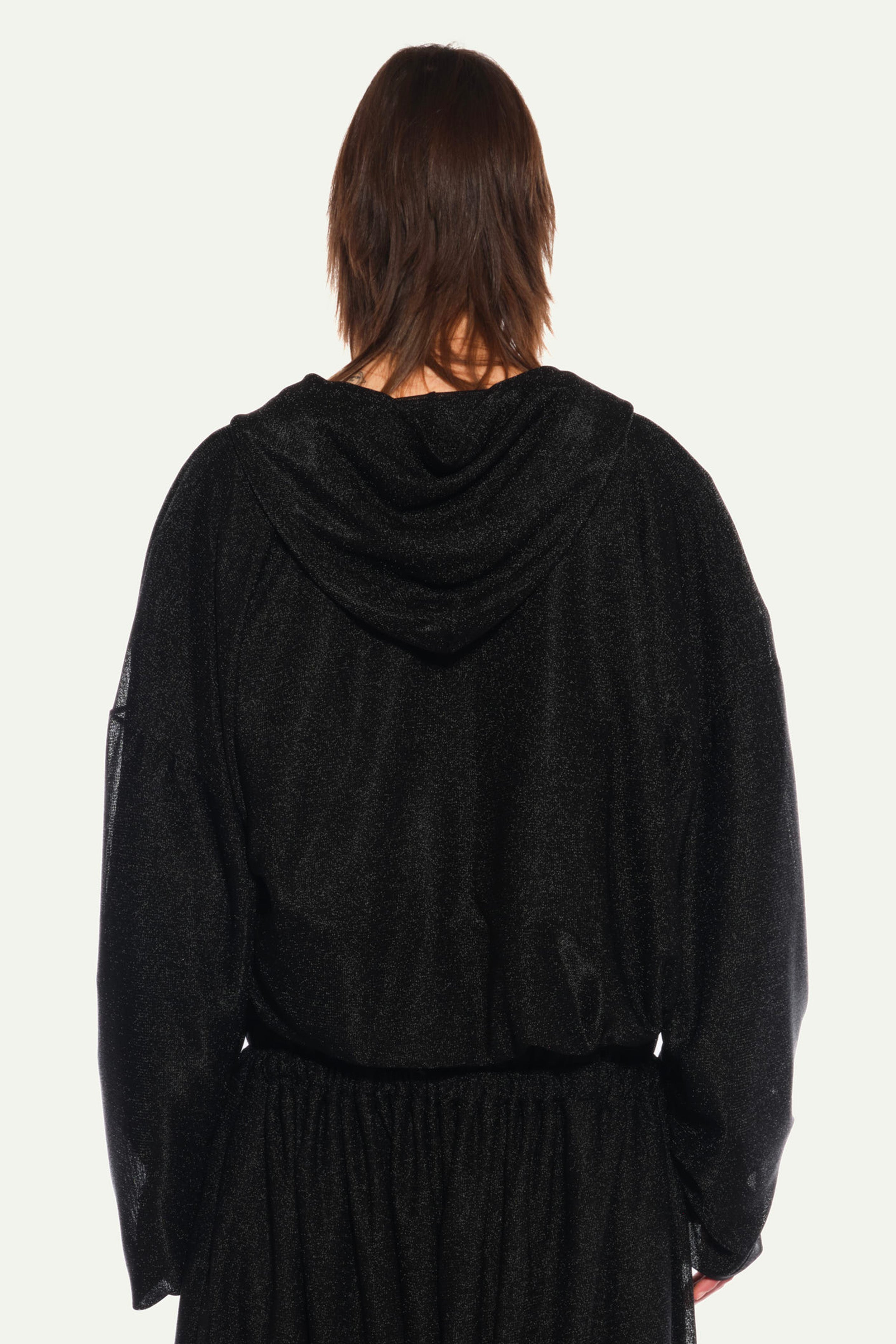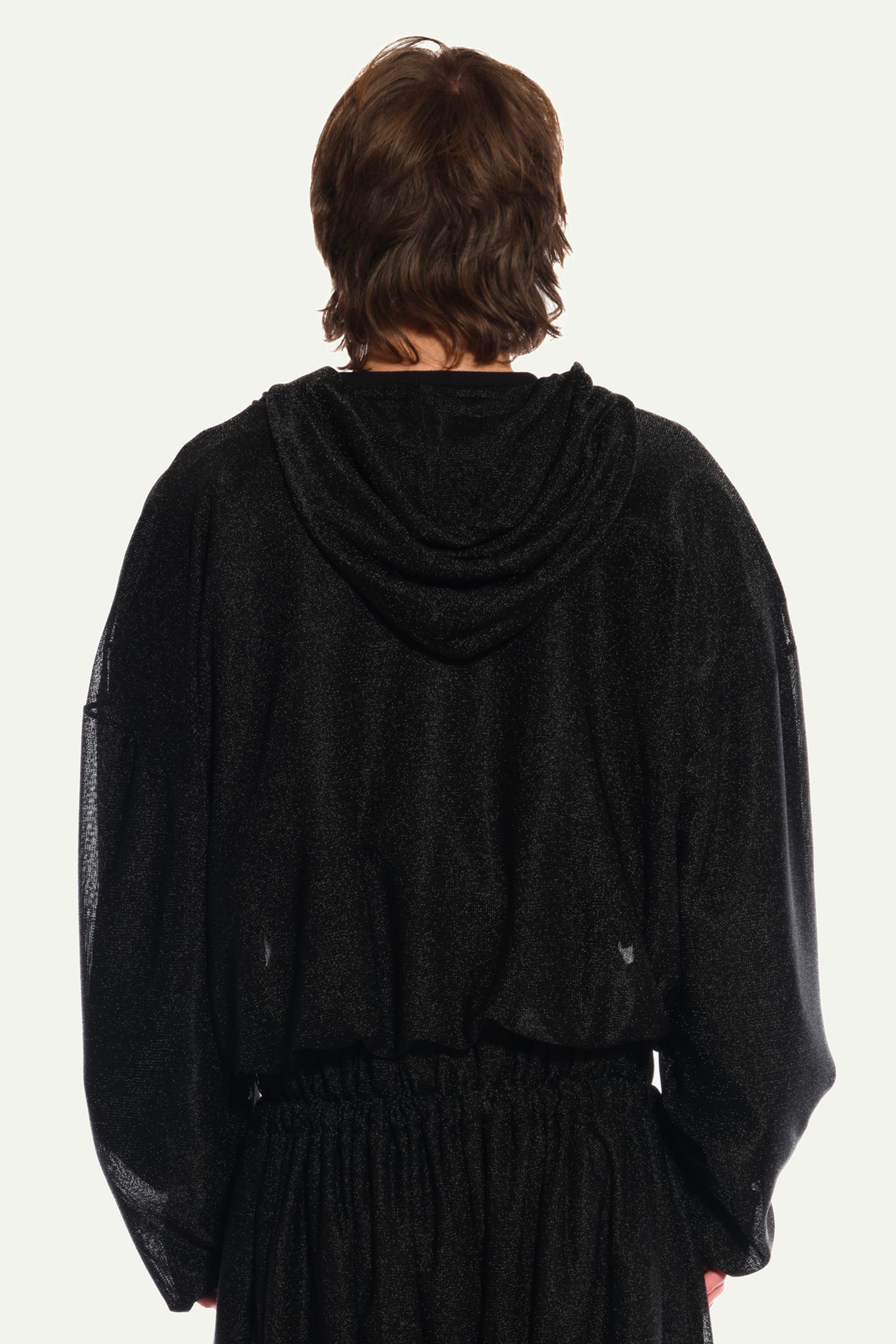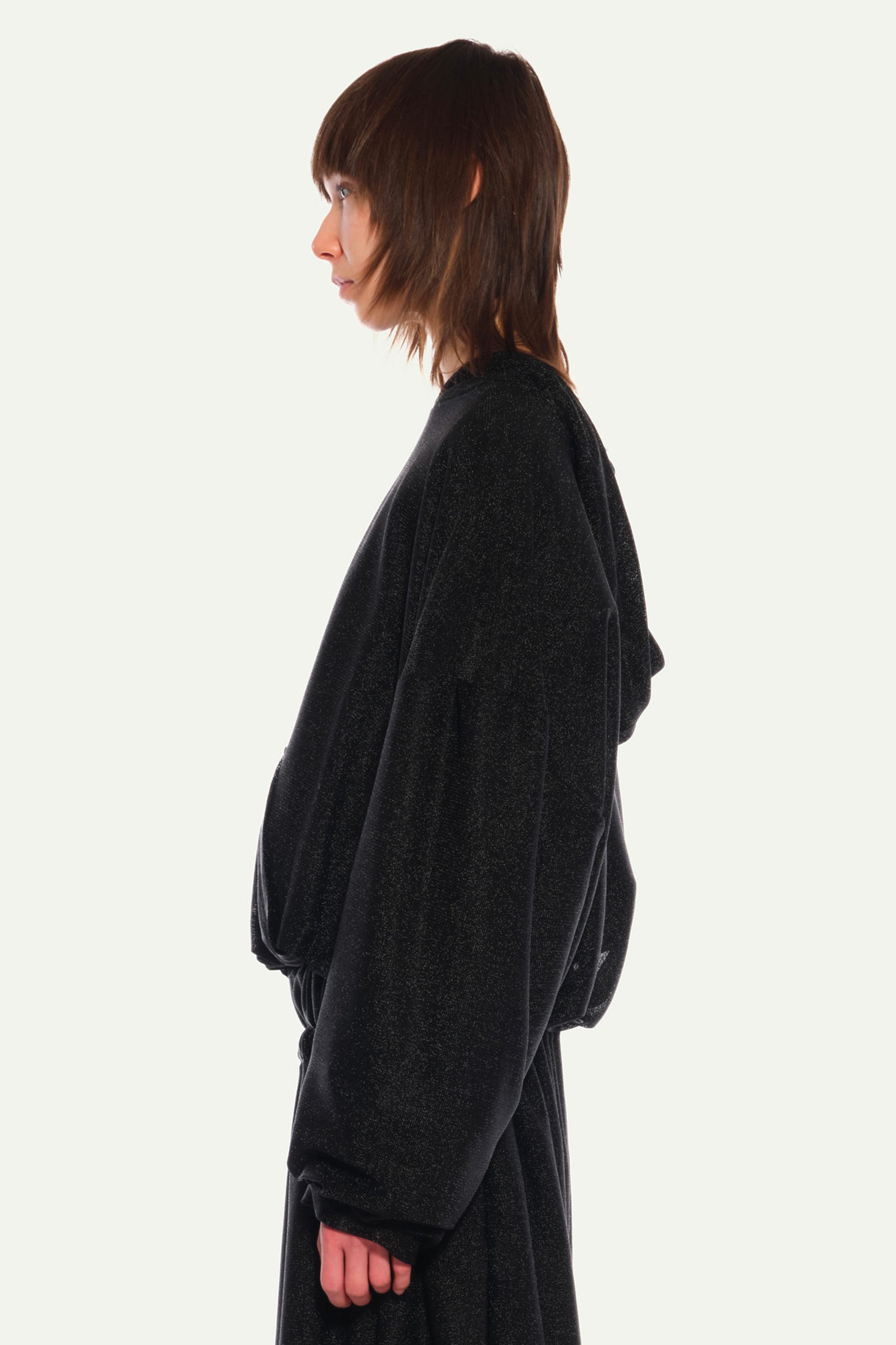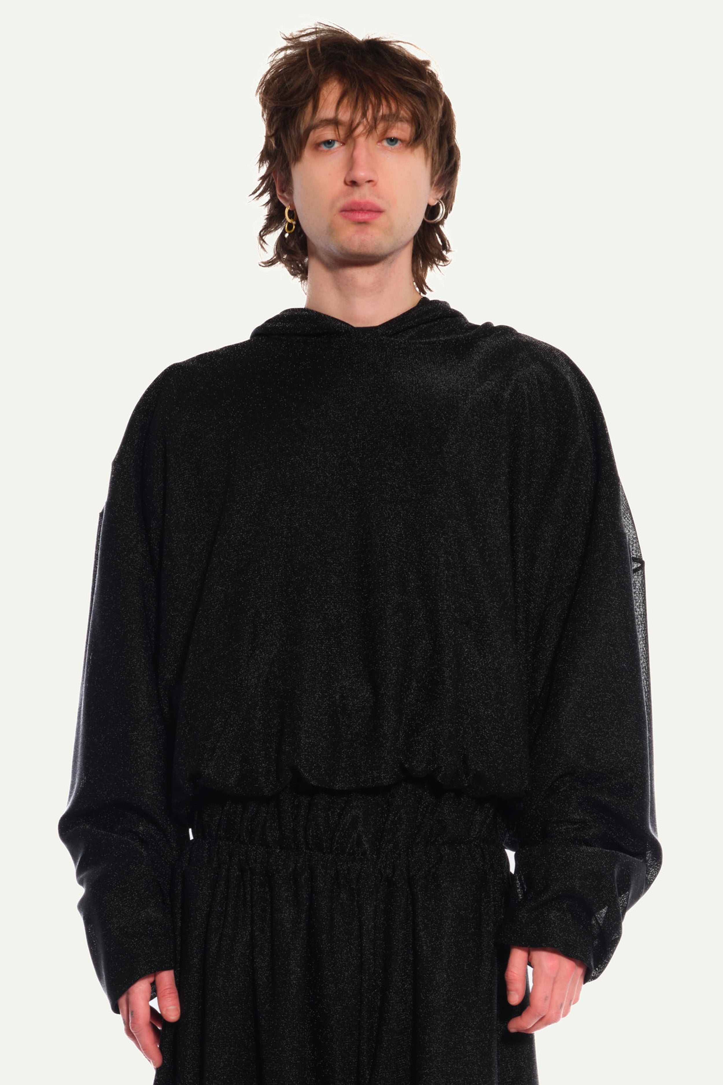 Black Shiny Oversized Hoodie Layered with Soft Molleton