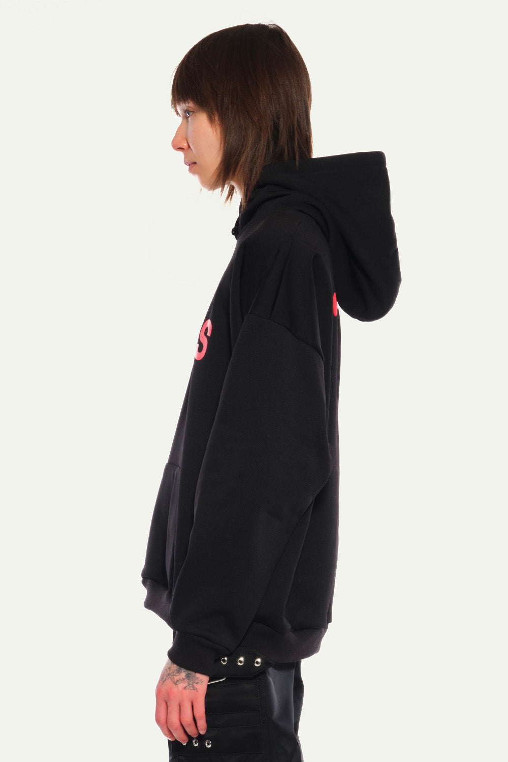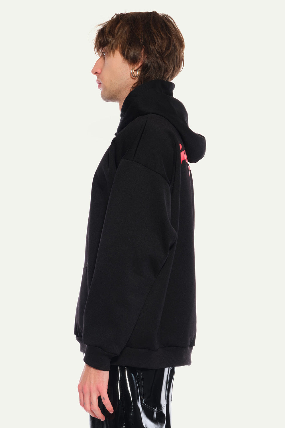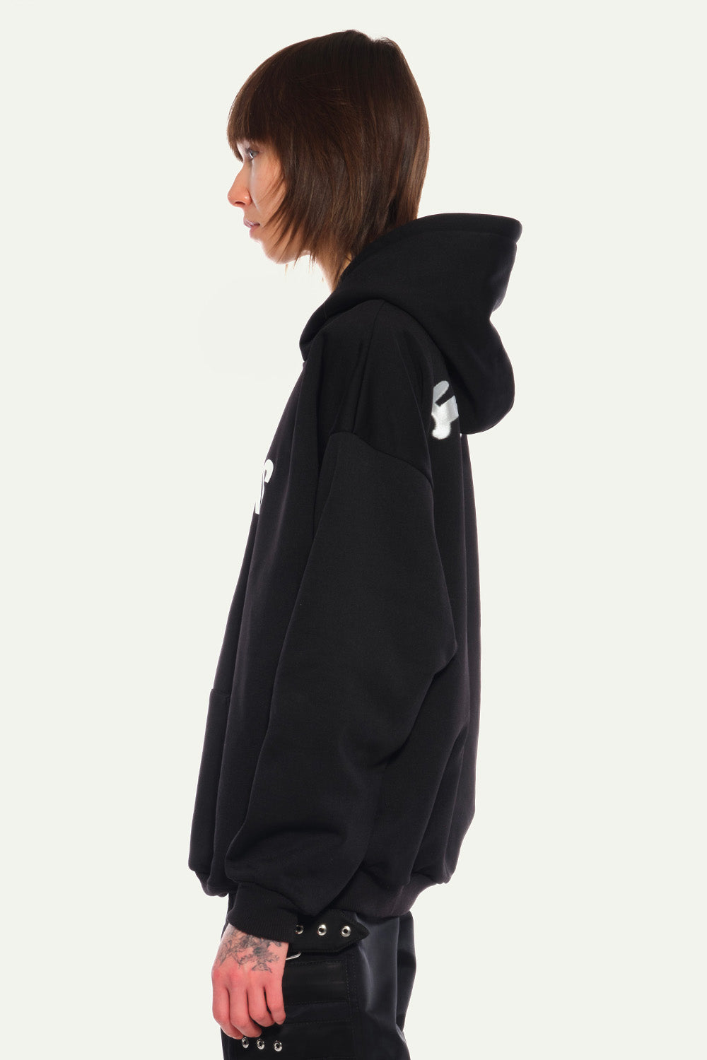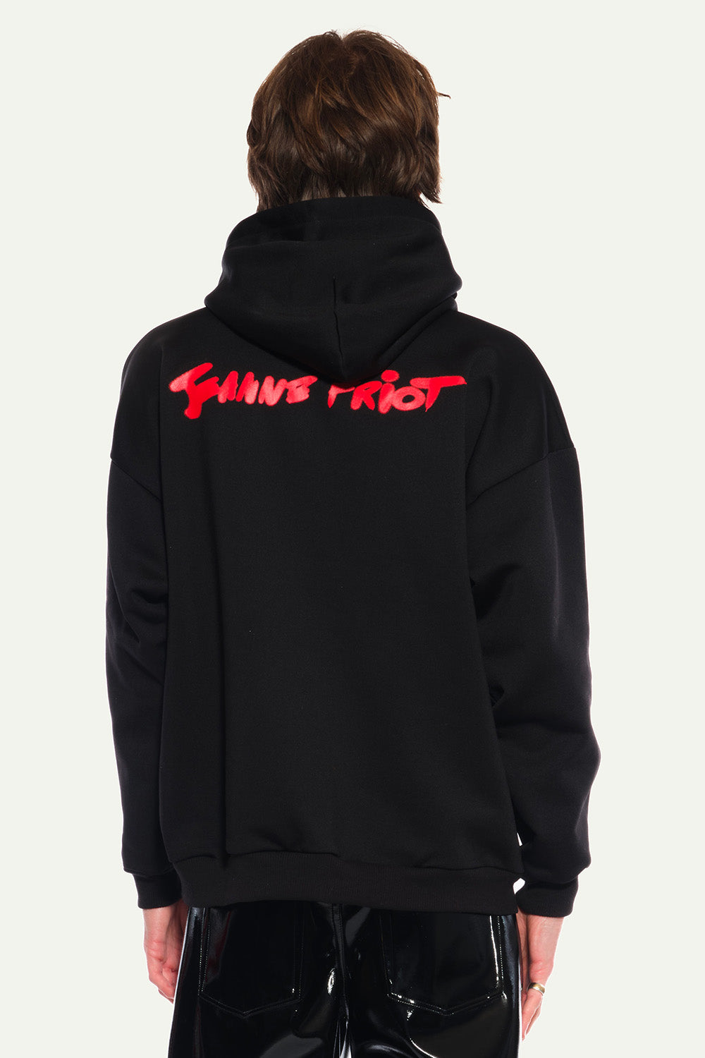 Black Oversized Hoodie screenprinted in Silver or Red Slogan