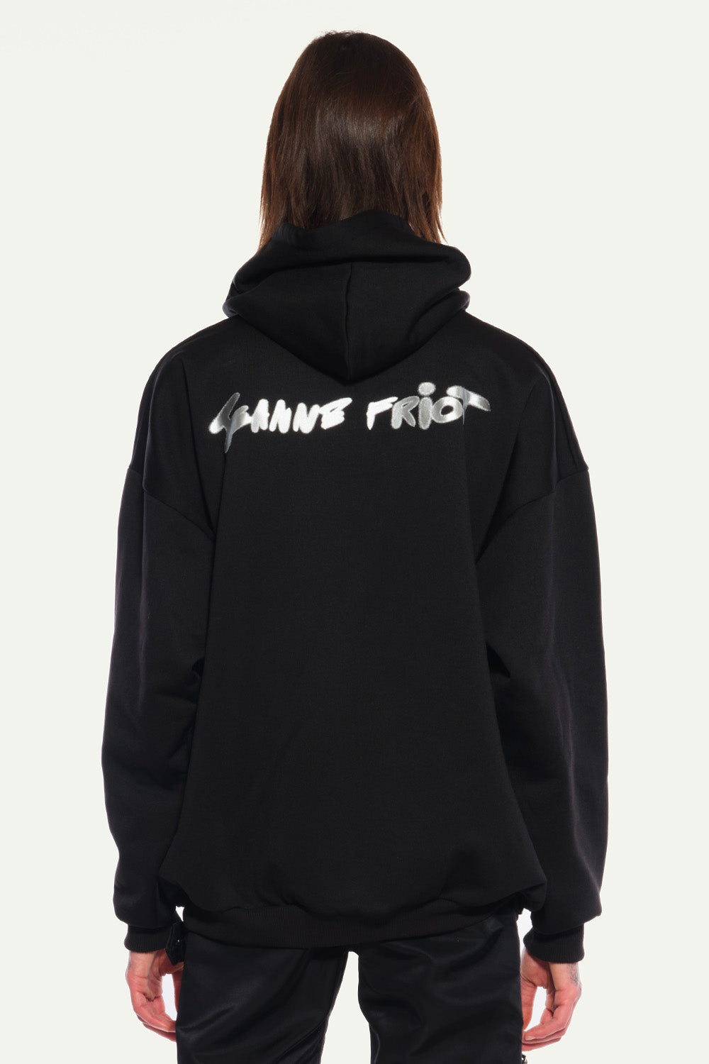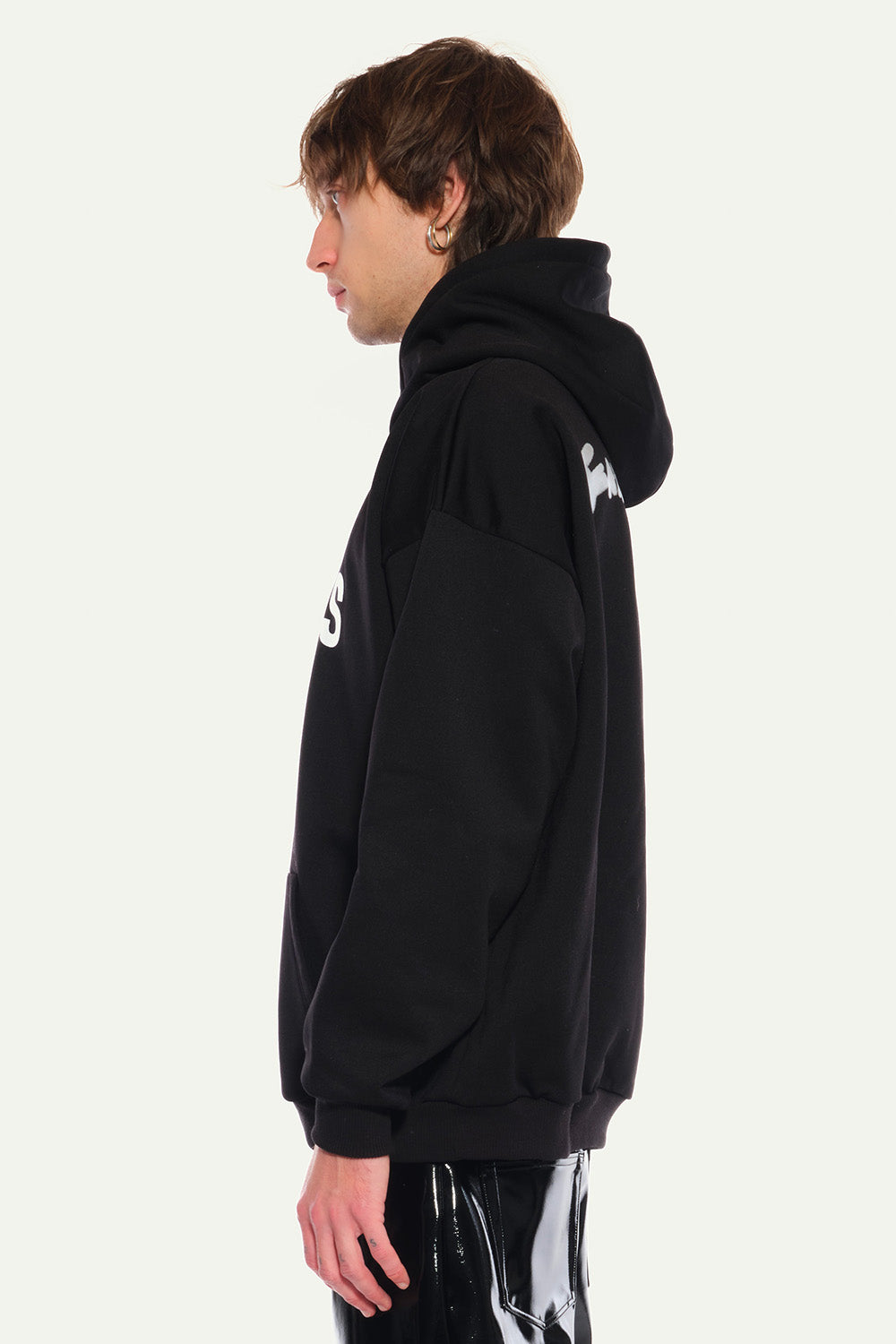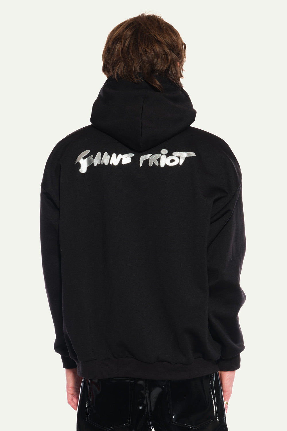 Black Oversized Hoodie screenprinted in Silver or Red Slogan