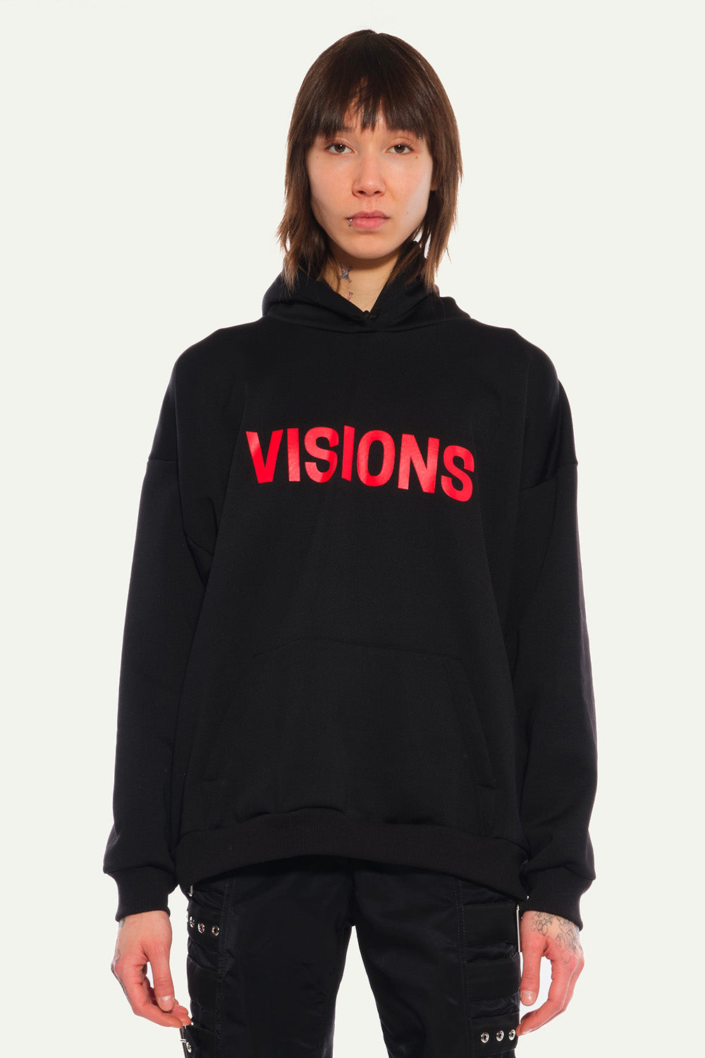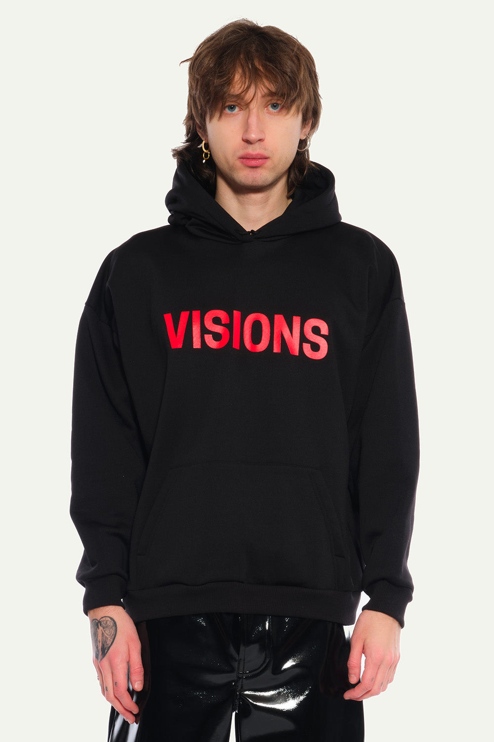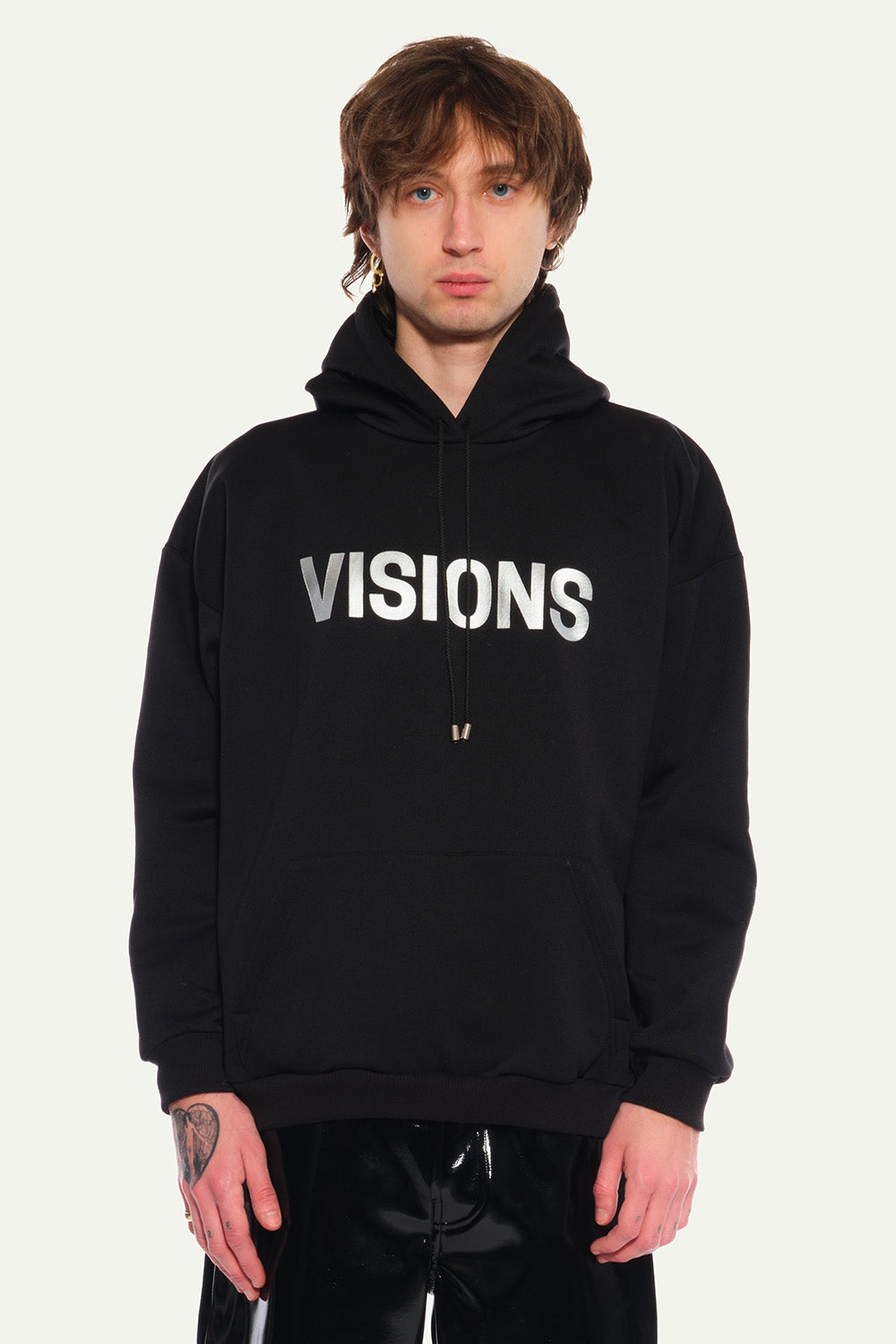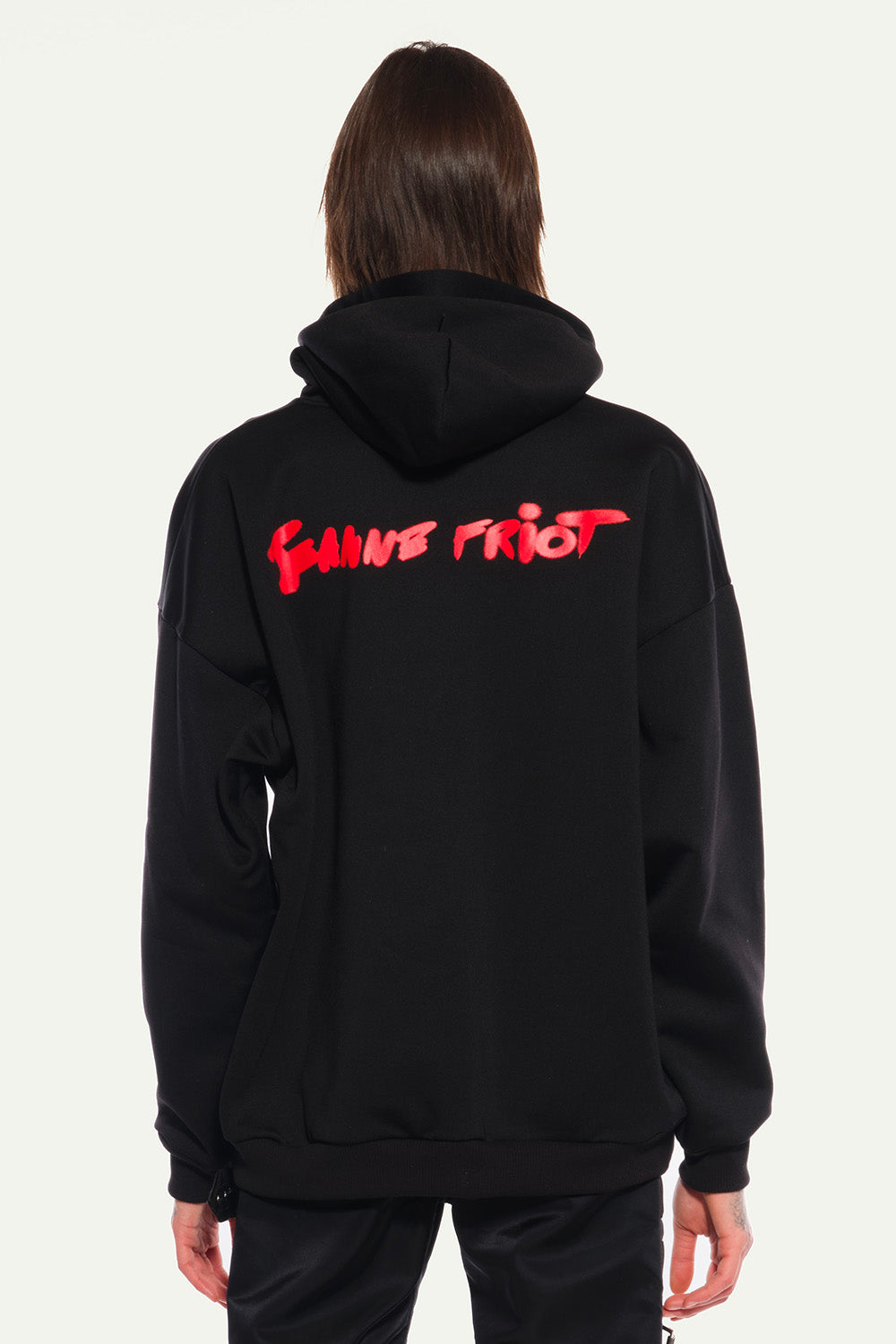 Black Oversized Hoodie screenprinted in Silver or Red Slogan