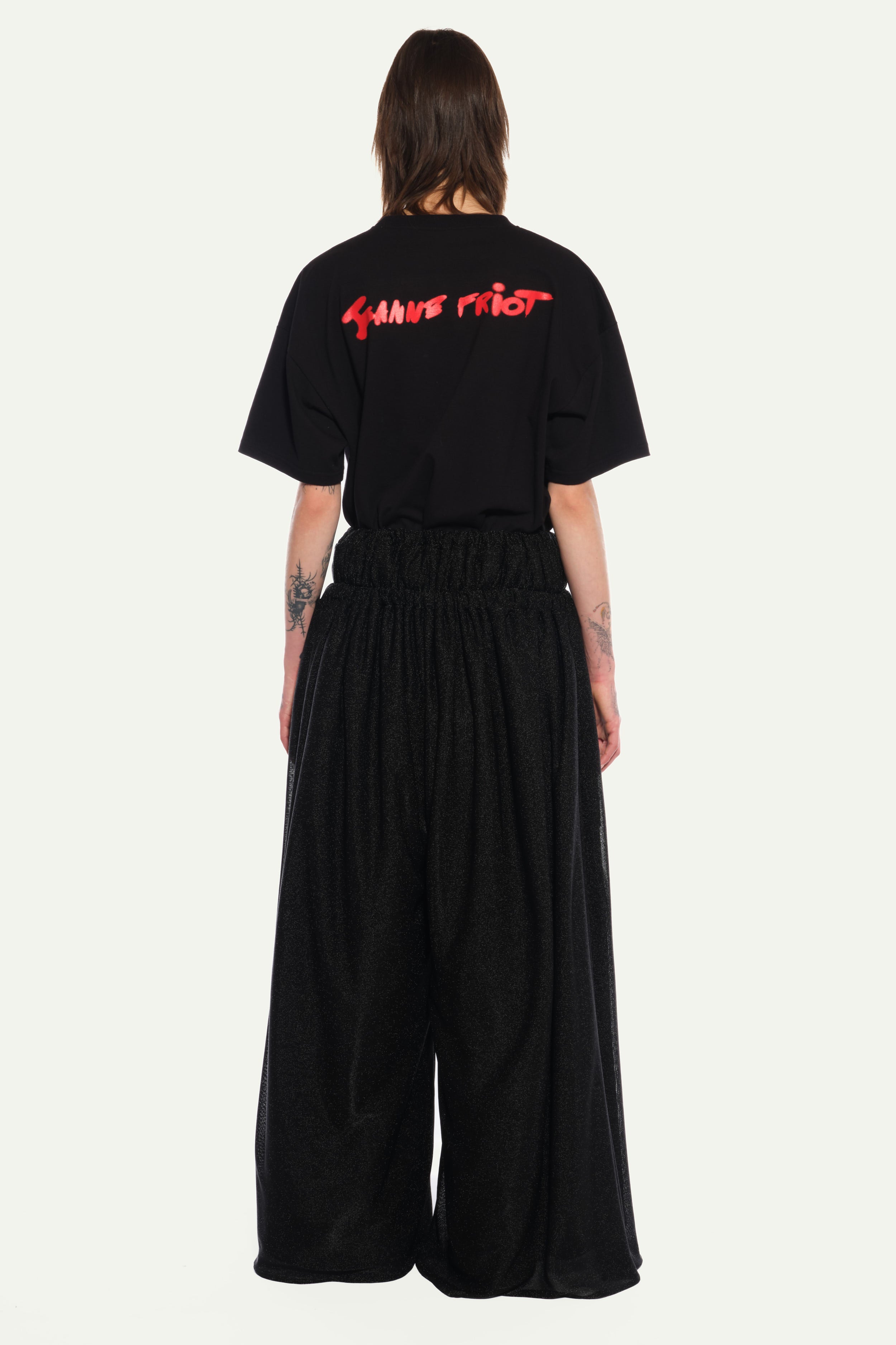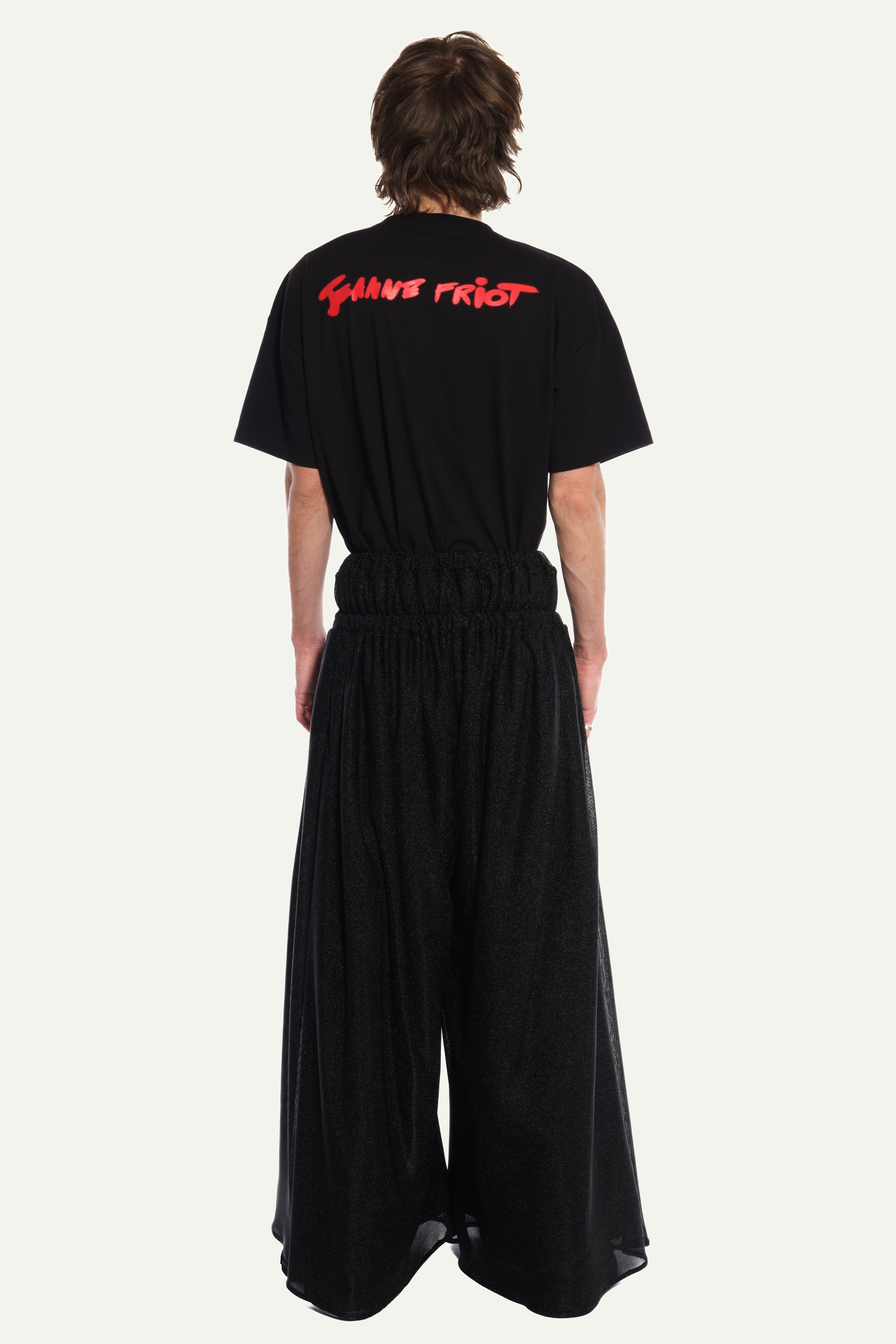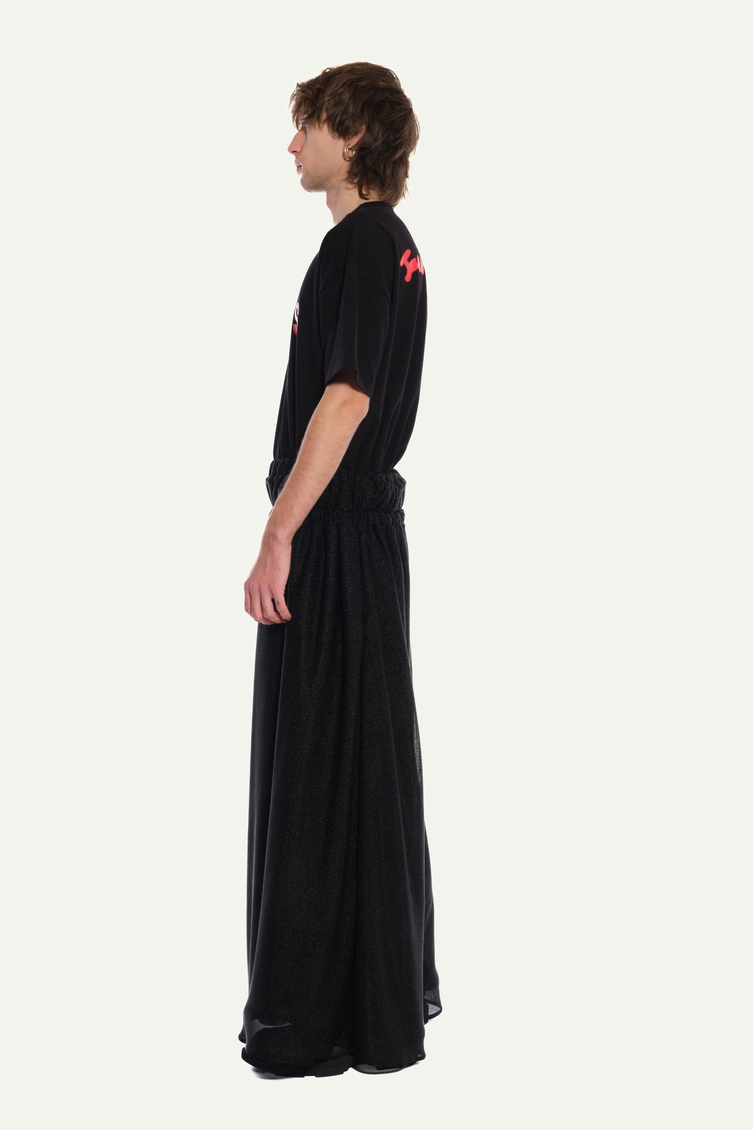 Black Shiny Oversized Jogging with Double Belt Layered with Soft Molleton