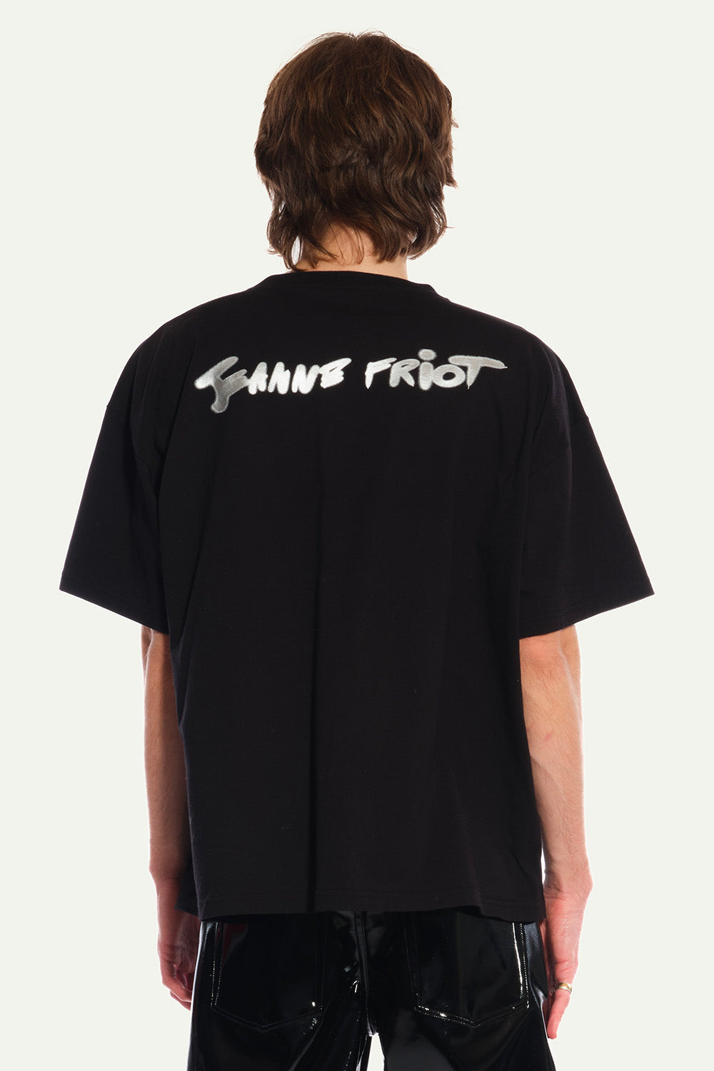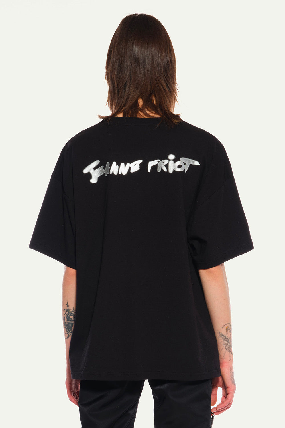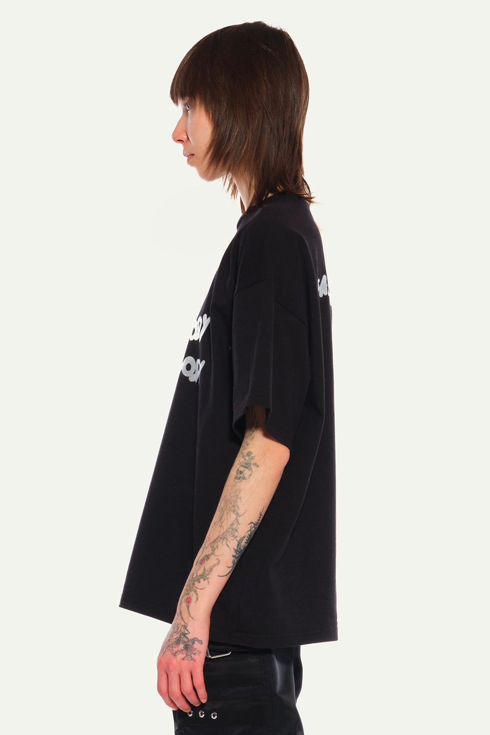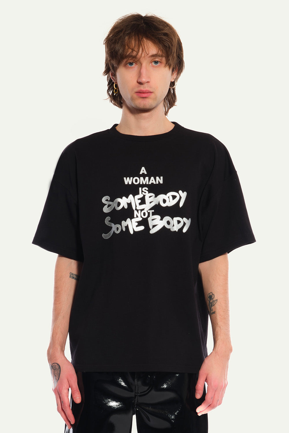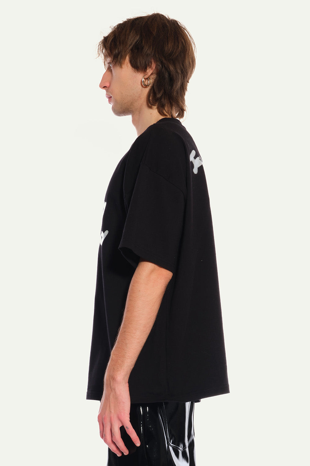 Oversized Black Tee in Silver silkscreenprinted